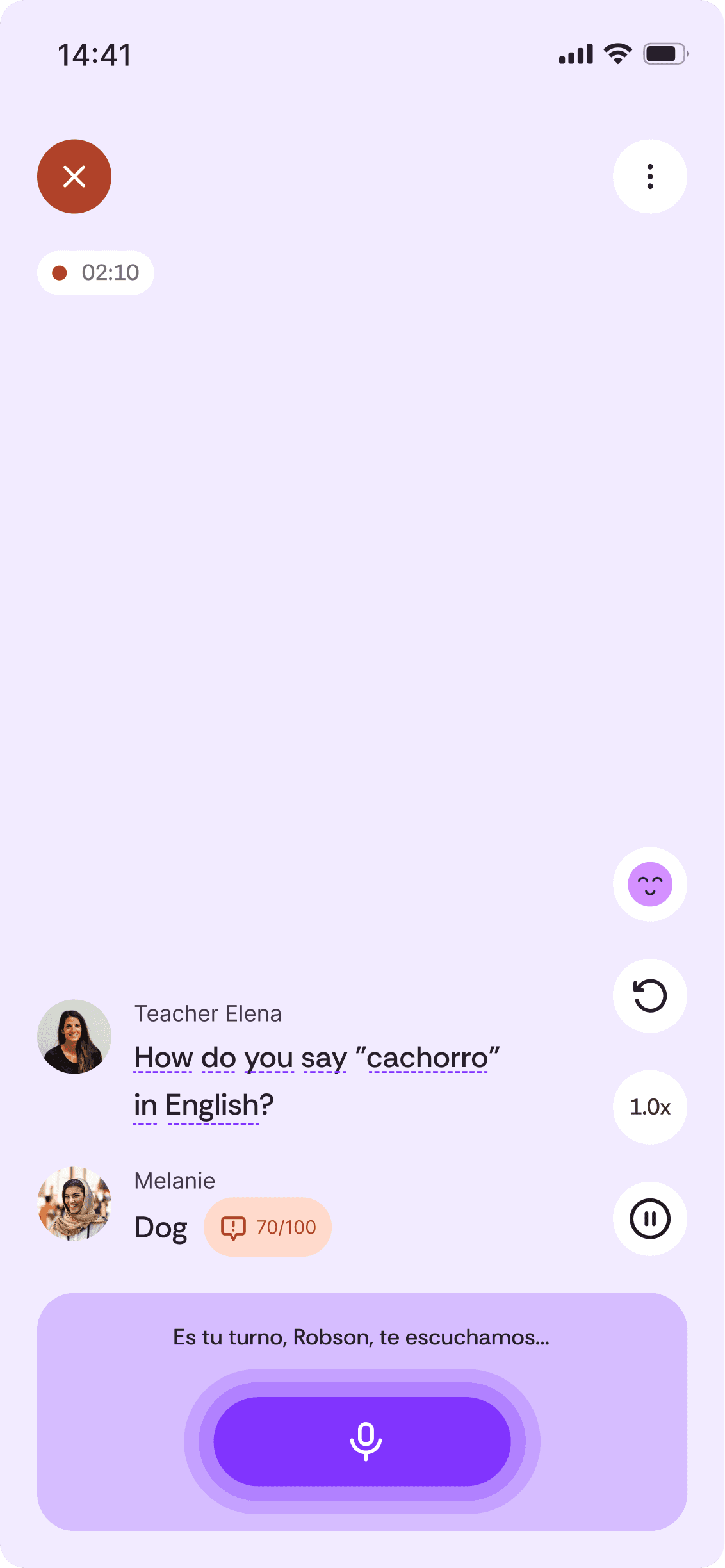 Con ejercicios de IA que adaptan el aprendizaje y miden su progreso, usted evoluciona rápidamente hacia la fluidez.