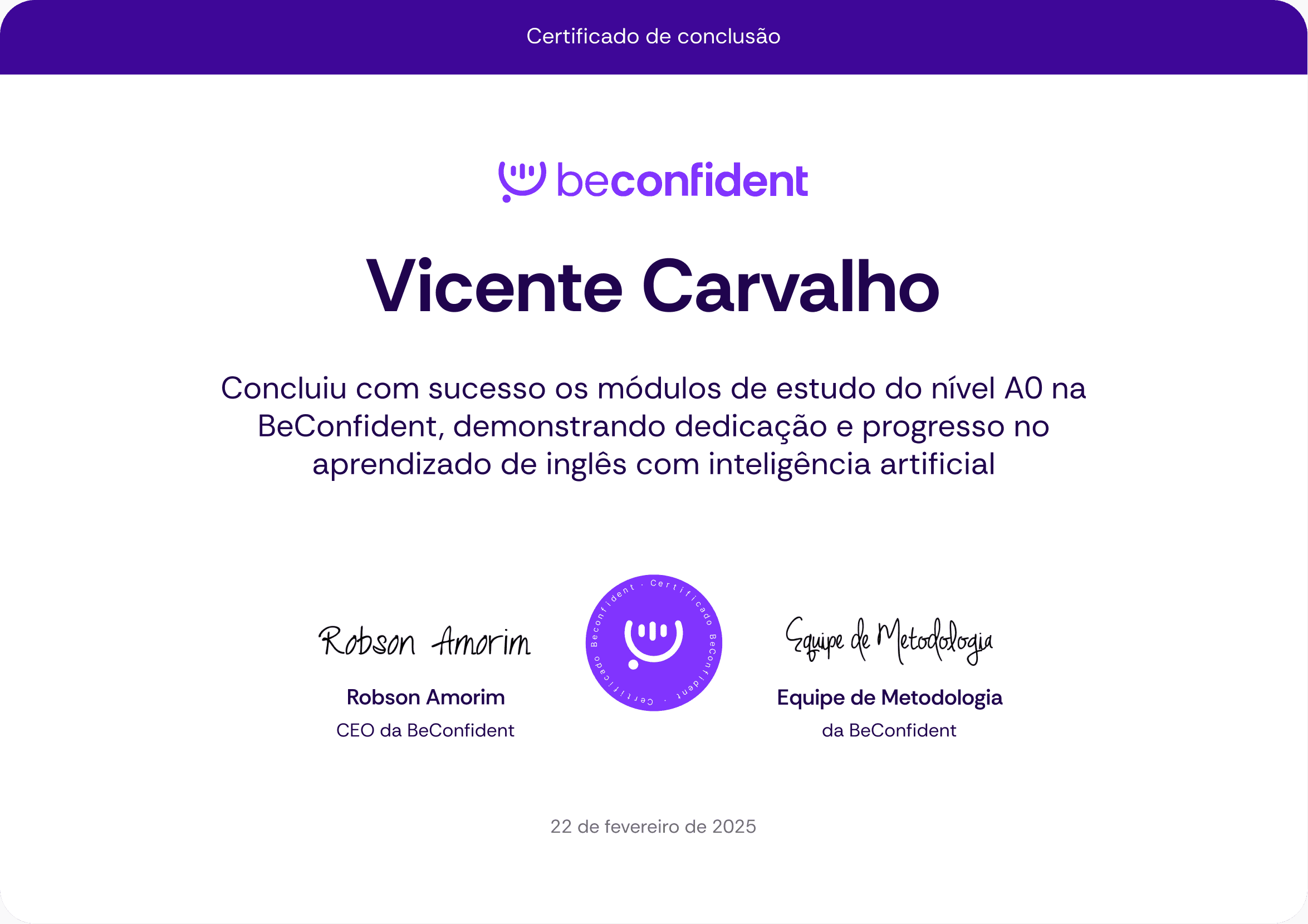 Receba certificados a cada acúmulo de horas de conversação em inglês para ser melhor reconhecido no mercado!