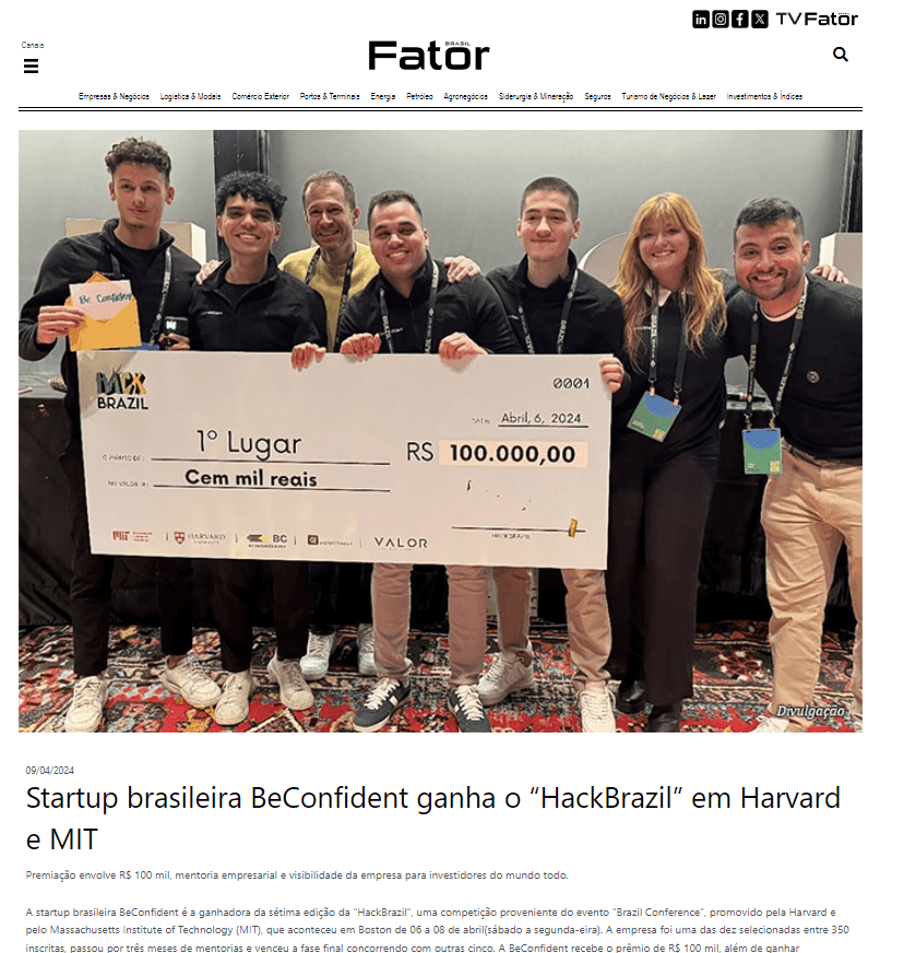 Em 2024 a BeConfident foi premiada em Harvard por ser a startup